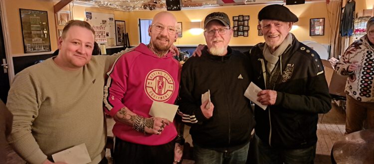 De vier winnaars: vlnr Johnny, Teake, Theo en Jan